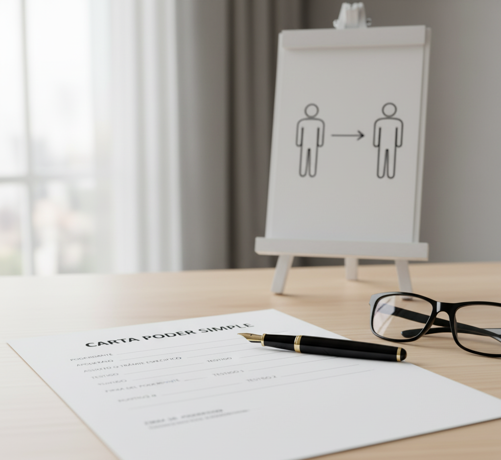 Redactamos una Carta Poder Simple clara y legal para que alguien actúe por ti. Solución rápida para recoger documentos, hacer gestiones o firmar por un asunto específico. Tu presencia legal, garantizada.